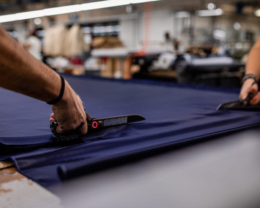 Experience the texture of Italian fabrics, feel the weight, drape and finish, and choose from exclusive buttons and refined details — while your design takes shape on screen.